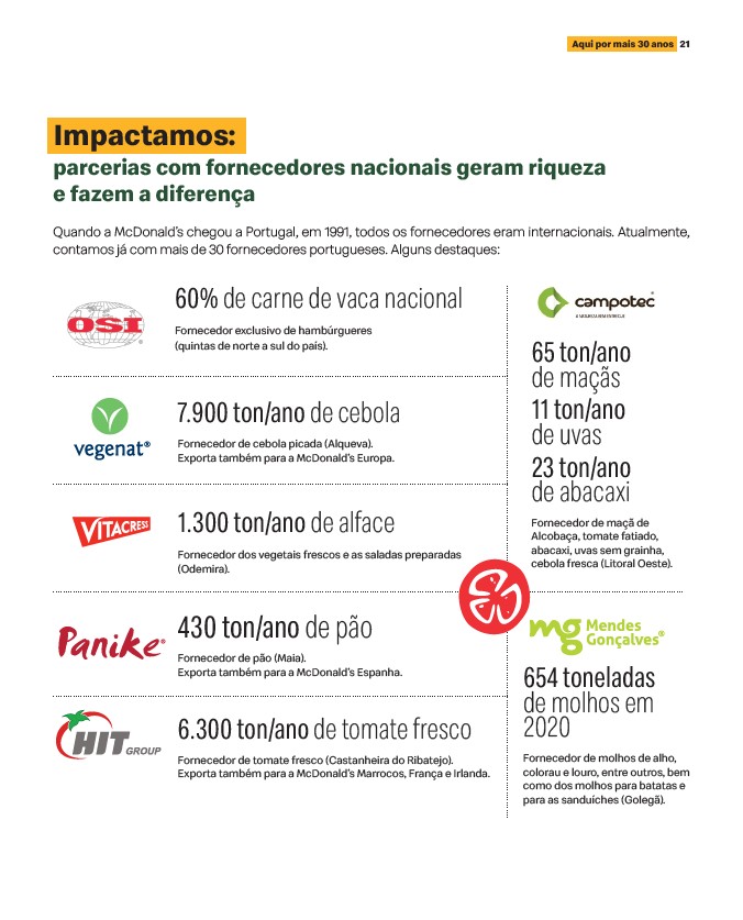Quando a McDonald’s chegou a Portugal, em 1991, todos os fornecedores eram internacionais. Atualmente,