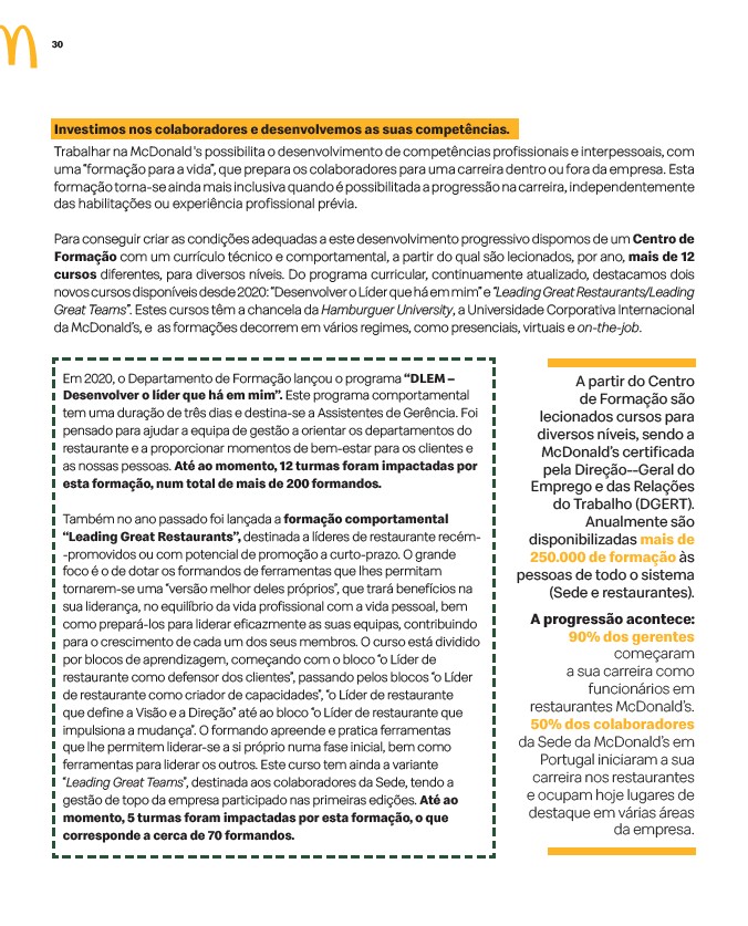 Great Teams”. Estes cursos têm a chancela da Hamburguer University, a Universidade Corporativa Internacional