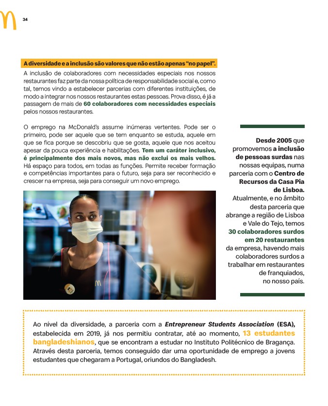 modo a integrar nos nossos restaurantes estas pessoas. Prova disso, é já a