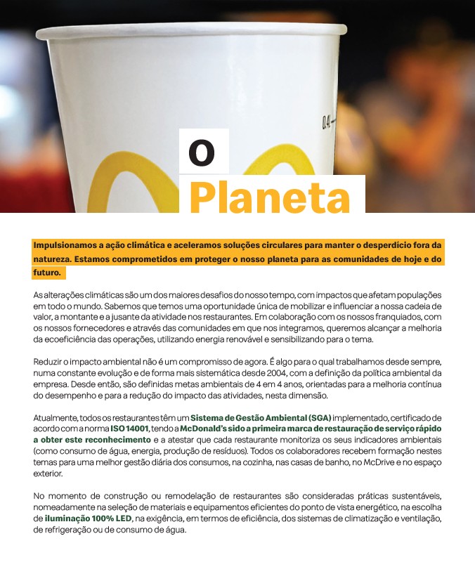 acordo com a norma ISO 14001, tendo a McDonald’s sido a primeira marca de restauração de serviço rápido