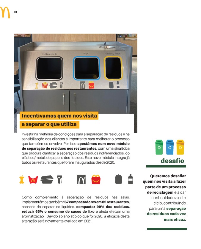 reduzir 65% o consumo de sacos do lixo e ainda efetuar uma