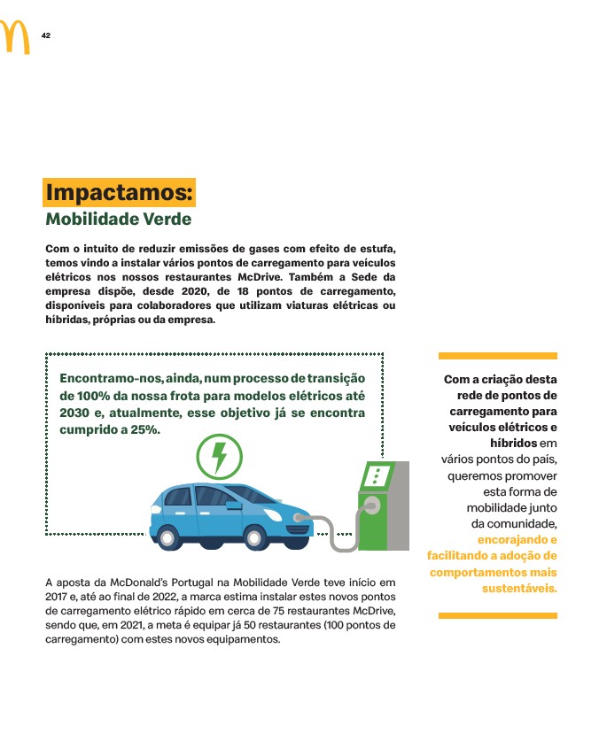 elétricos nos nossos restaurantes McDrive. Também a Sede da