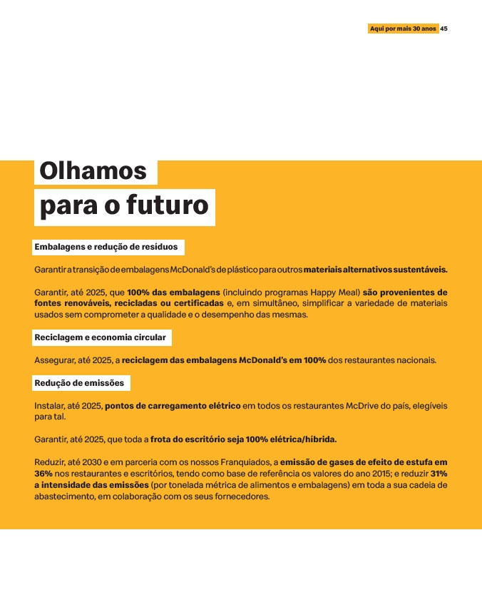 Garantir, até 2025, que 100% das embalagens (incluindo programas Happy Meal) são provenientes de