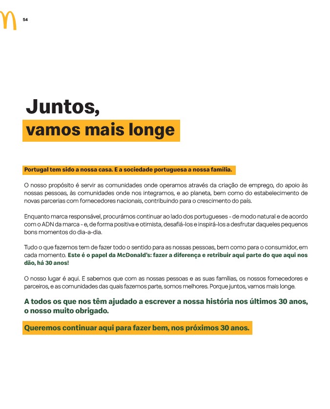 cada momento. Este é o papel da McDonald’s: fazer a diferença e retribuir aqui parte do que aqui nos