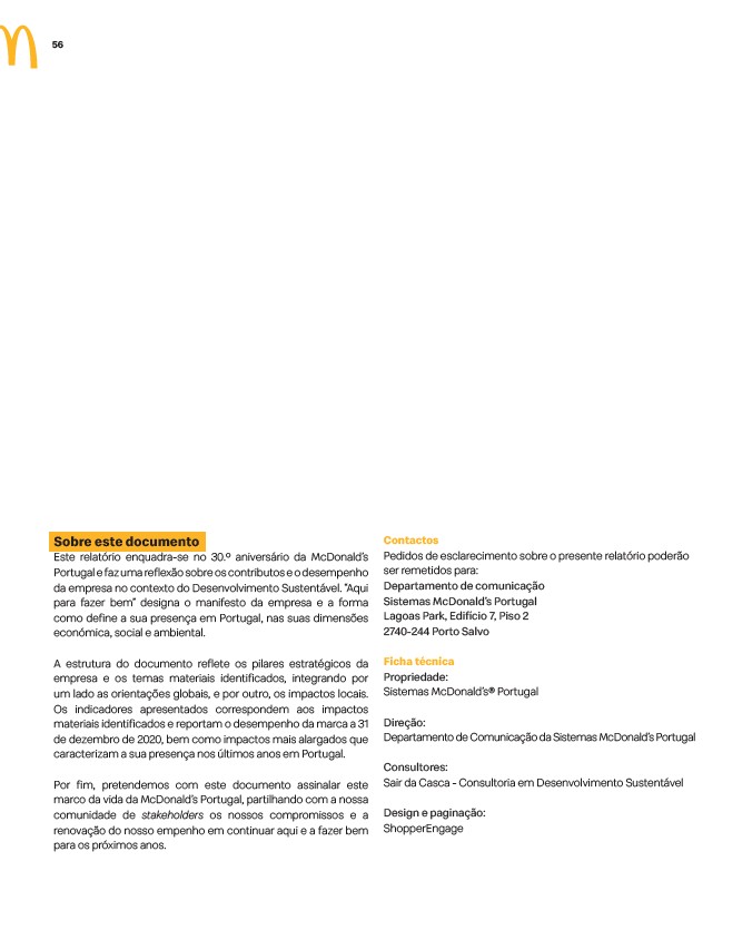 Este relatório enquadra-se no 30.º aniversário da McDonald’s