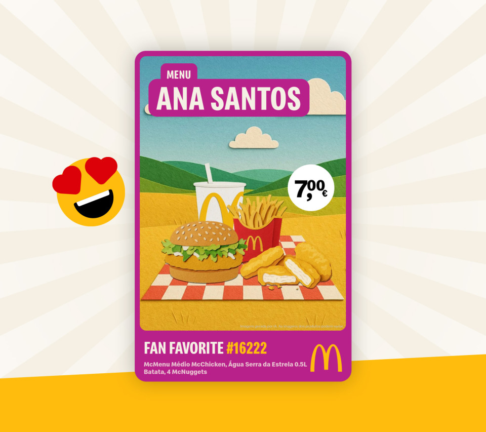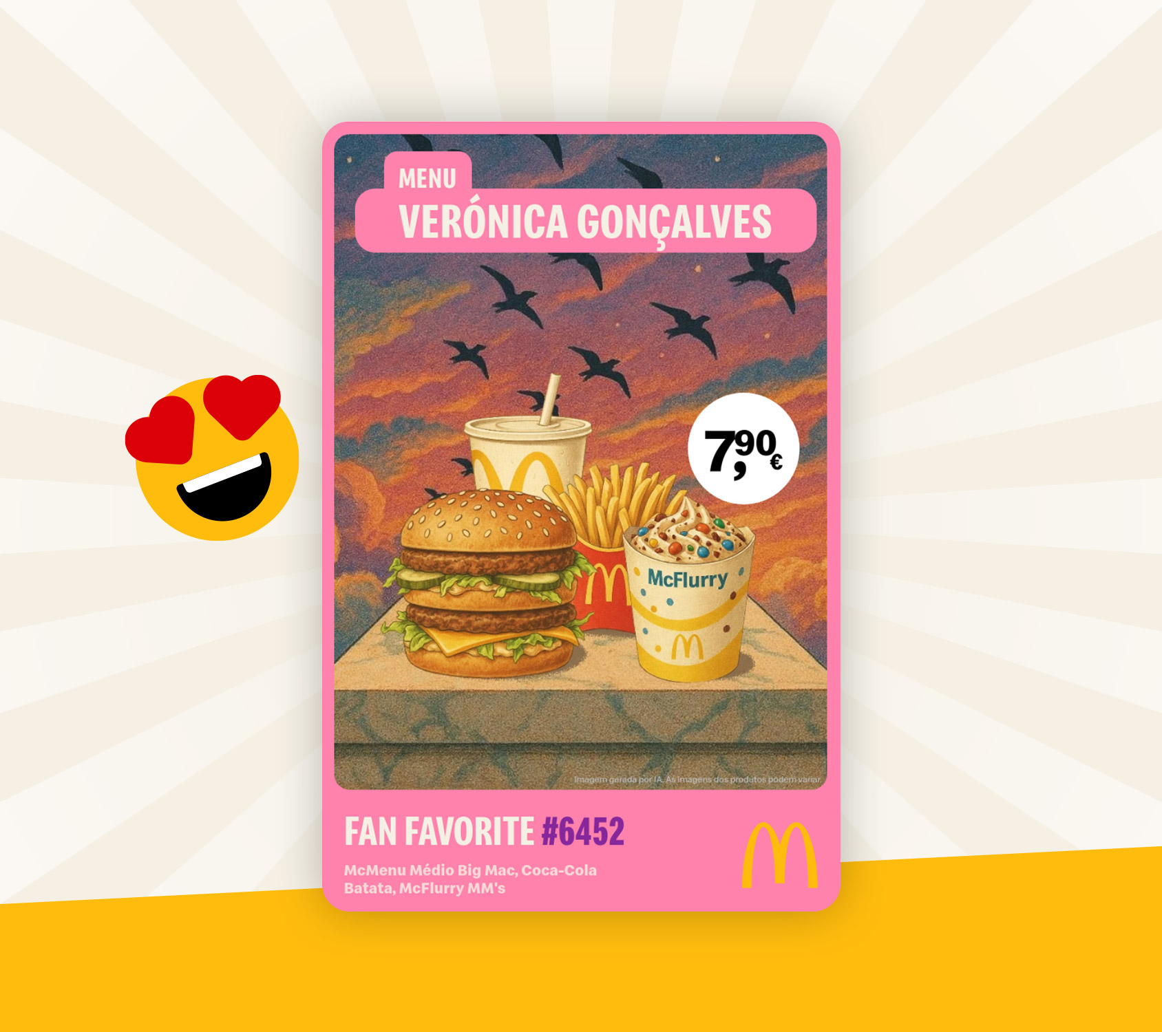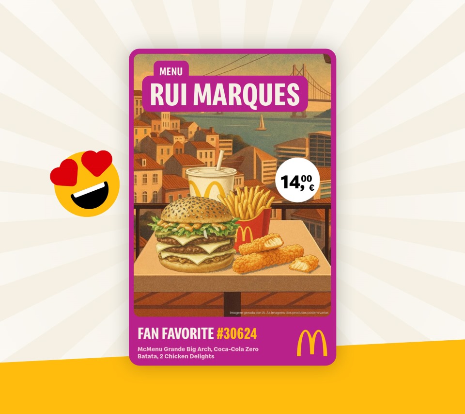 Ao criares o teu cupão na App McDonald’s, entras automaticamente na corrida: quanto mais vezes ele for escolhido para ser redimido pelos outros fãs, mais chances tens de estar entre os vencedores semanais.
